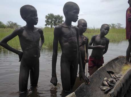Meninos tentam vender peixes após a pesca em Nyal, Sudão do SulFoto: AP